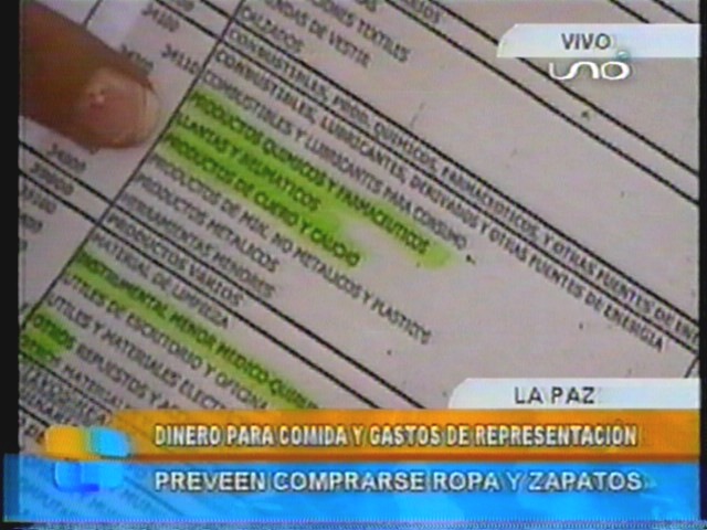Se ha destinado cerca de 1.000.000 de bolivianos para gastos de comida, y una cifra similar para gastos de ropa, zapatos y gastos de representación.