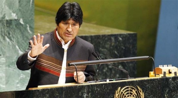 El inefable presidente plurinacional volvió a hacer de las suyas, ahora en el principal foro mundial. En el marco de la Asamblea General de las Naciones Unidas, donde se analizan las Metas del Milenio y la cooperación con los países en vías de desarrollo, el mandatario aplicó el método sindical a las relaciones exteriores, consistente en golpear y hostigar a aquellos de quienes se pretenden mayores fondos. Repitió que “estamos mejor sin el FMI y el Banco Mundial”, ocultando que le está pidiendo prestados 500 millones de dólares al BM, y habló de una supuesta reducción de los índices de pobreza en Bolivia, cuando la propia ONU señala que la cifra de 60% se mantiene incambiada. Criticó a las potencias por “destinar más recursos a la compra de armamento que a la lucha contra la pobreza”, obviando que su gobierno le está comprando armas a Rusia por valor de 80 millones de dólares, cifra con la que se podría duplicar el presupuesto anual de educación y salud de Bolivia. Además realizó un anuncio inquietante: el probable uso de una parte de las reservas internacionales de Bolivia en una aventura financiera trasnacional, el “Banco del Sur”. De yapa, durante la presentación de la edición en inglés de “Jefazo”, el presidente dijo que los lugares por donde antes pasaba caminando “ahora los sobrevuelo en avión o helicóptero, ¡cómo cambia la situación!”.