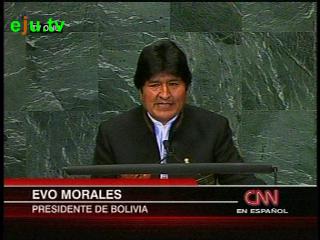 El presidente, Evo Morales se dirigió este lunes ante la Asamblea General de las Naciones Unidas que se realiza en Nueva York. El primer mandatario en un planteamiento de cuatro puntos pidió a los países del mundo seguir el ejemplo boliviano y recuperar los recursos para redirigirlos hacia la lucha contra la pobreza.