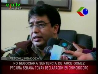 El Fiscal Milton Mendoza, dio a conocer que la sentencia que tiene el ex Ministro del Interior, Luis Arce Gómez, no será negociable, más al contrario el fiscal anunció que la próxima semana se constituirá al penal de Chonchocoro para tomarle su declaración.