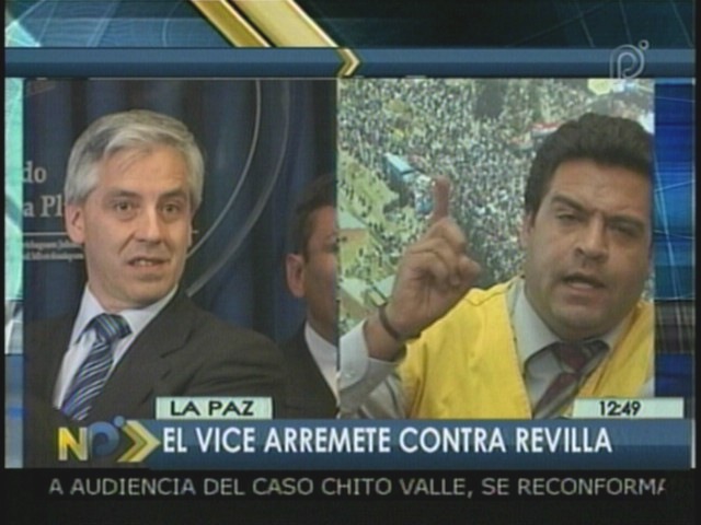 DURO CON REVILLA, EL VICEPRESIDENTE LE DICE QUE PIDA DISCULPAS A LA PAZ Dijo que las denuncias no son políticas, le pide que no encubra ni se escude en delincuentes, que aclare a la población sobre los retrasos en los Puentes Trillizos. (Unitel)