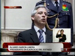 ’El presidente Evo fue elegido el año 2009, ejerce su mandato del 2 de enero del 2010 hasta el 22 de enero del 2015, pero por mandato constitucional puede optar, si el pueblo le da el apoyo popular, por una reelección 2015-2020, eso es lo que dice la Constitución en su artículo 168. En la disposición transitoria primera acápite segundo, dice: los mandatos anteriores a la vigencia de esta Constitución serán tomados en cuenta a los efectos del cómputo de los nuevos períodos de funciones, los mandatos anteriores. El mandato en la antigua Constitución era de 5 años, y el presidente Evo y el vicepresidente no cumplieron su mandato, el año 2009 se interrumpió el mandato, solo estuvimos 4 años, la Constitución habla del mandato y el presidente Evo por presión de las fuerzas opositoras no cumplió el mandato ’, indicó el presidente en ejercicio, Álvaro García Linera.