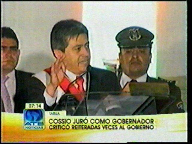 Tarija: El gobernador Mario Cossio ratificó nuevamente su acusación en contra del Gobierno nacional de gestar un golpe de Estado contra su gestión en complicidad con los sectores sociales, universidad estatal, instituciones, empresarios y otros sectores sociales organizando una serie de movilizaciones en Tarija, como las sucedidas el pasado viernes (con el enfrentamiento) entre universitarios y policías.