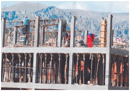 AUQUISAMAÑA. Un grupo de trabajadores labora en una construcción privada en la zona Sur.