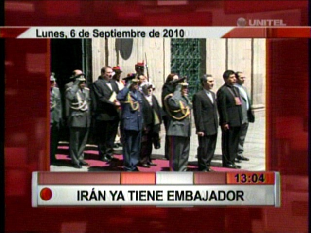 IRAN CON EL PRIMER EMBAJADOR EN BOLIVIA Hoy fue acreditado por el gobierno. Surgen las críticas de los opositores, dicen que Bolivia busca aliados con países pobres y violentos. (Unitel)
