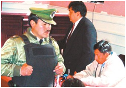 image Audiencia. Gabriel Pinto Tola presta declaraciones ante la vigilancia de un oficial de la Policía.