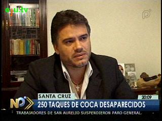 El político Ernesto Justiniano, se refirió a la desaparición de 250 taques de hoja de coca de las oficinas de Digcoin en la ciudad de Santa Cruz. Justiniano, dijo que con lo sucedido uno se da cuenta que en realidad no existe la coca ilegal en el país, desde el punto de vista real, porque toda la coca ilegal está llegando como destino al narcotráfico. 250 taques perdidos de Digcoin no significarían nada para Ernesto Justiniano, quien considera que esta cifra es efímera ante las 25 mil toneladas de coca chapareña que el 2009 no terminaron en el mercado legal.