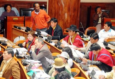 MAYORÍA. Los asambleístas del oficialismo aprueban con la mano en alto el proyecto de ley que fue debatido durante 12 horas.