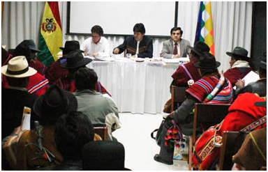 En una reunión con los dirigentes de la Federación de Campesinos Túpac Katari, el presidente Evo Morales se comprometió a analizar las denuncias de corrupción presentadas contra cinco ministros. El Gobierno, no obstante, descartó el cambio de ministros.