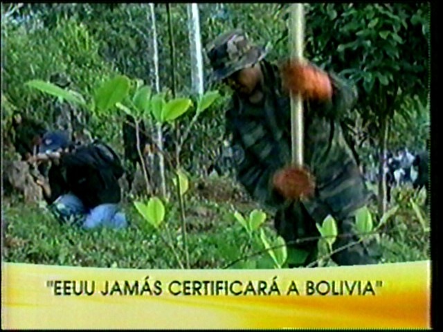 Radio especial. ‘La coca que no ha sido erradicada en los plantines, sino decomisada, que estaba circulando por rutas sospechosas, son 2 millones de libras, una cantidad muy significativa, y no hay dinero para incinerar toda la cantidad, la ayuda norteamericana es 100.000 dólares para la incineración y eso cubrirá sólo la mitad de la erradicación’.