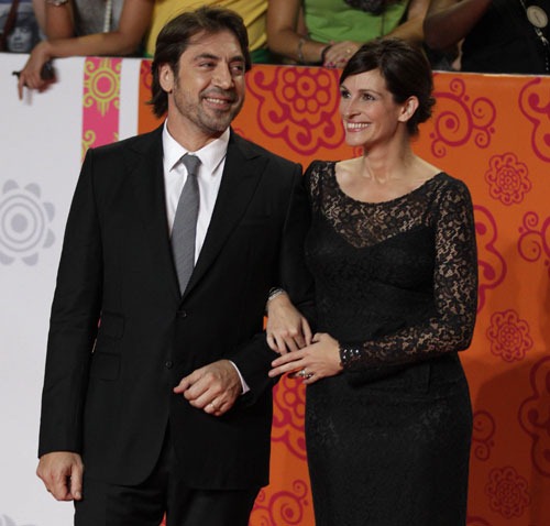 Por la noche, los dos se vistieron de gala para asistir a la première en la ciudad del Tíber. Bardem, con traje oscuro, camisa blanca y corbata gris, no podía dejar de sonreír sobre la alfombra roja, síntoma del inmejorable momento que sin duda vive tanto personal como profesionalmente. La protagonista de Pretty woman, que el próximo domingo aterrizará en San Sebastián con su familia para recibir el Premio Donostia en el Festival de San Sebastián, iba vestida completamente de negro y con la melena recogida. Come reza ama está basada en el homónimo "best seller" de la periodista Elizabeth Gilbert, que narra la búsqueda del sentido de la vida de una mujer de mediana edad a través de viajes a Italia, India y Bali.