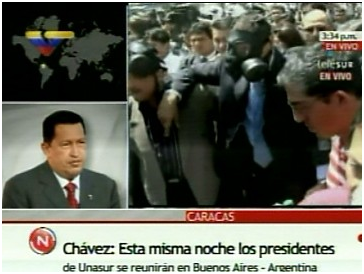 Caracas.- "El presidente Rafael Correa está en peligro de muerte en estos momentos (…) lo tienen secuestrado", así lo afirmó el presidente de la República de Venezuela, Hugo Chávez Frías, a través del canal TeleSUR, además ratificó que no podrán derrocar el mandato legítimo del presidente ecuatoriano.