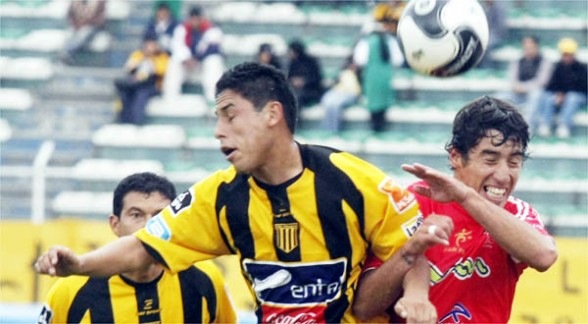 Poco a poco, The Strongest copó el medio campo y aprovechando las desinteligencias de la defensa “aviadora” tuvo varias opciones, hasta que al final llegó su recompensa a los 39 minutos, cuando Alejandro Chumacero con un potente remate cruzado mandaba el balón al fondo de las redes para el 1-0 parcial. Chumacero se encontraba sólo en la banda izquierda y recibió libre de marca el pase de Pablo Vásquez que recibió con el pecho un centro de Di Cosmo.