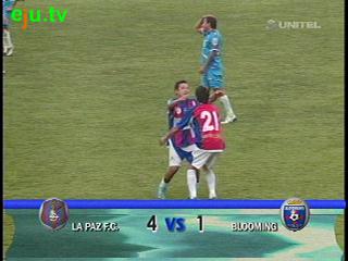 Fue goleado por La Paz F.C. (4-1). Se le vienen tres fechas en casa. La Paz F.C., con más actitud que buen fútbol, se sacó del camino a Blooming y también le puso freno en su marcha como uno de los líderes del torneo Clausura con una goleada por 4-1, ayer en el estadio Hernando Siles.