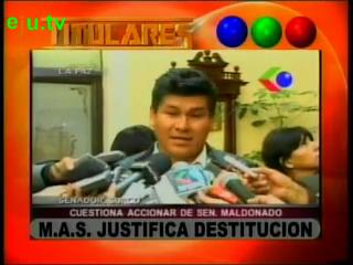 Titulares de televisión, mediodía, 5/10/10 TV: Red Uno, Unitel, Megavisión. Gigavisión, PAT, ATB. El MAS saca a Maldonado de Comisión que trata Ley Antirracismo. El Gobierno declarará en emergencia al departamento del Beni por sequía. Marcha y huelga de periodistas. Azucareros venden azúcar en los mercados.