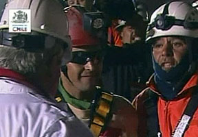 Al Presidente Sebastián Piñera lo abrazó efusivamente en varias ocasiones, mientras que al ministro de Minería, Laurence Golborne, lo saludó con un coloquial: "Jefazo".
