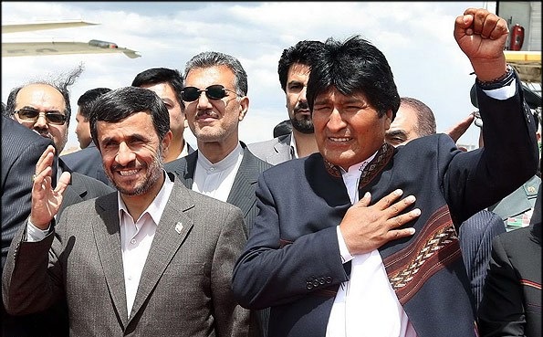 Ahmadinejad-Evo-Morales El presidente Evo Morales festejó su cumpleaños número 51 en la República Islámica de Irán, donde resaltó las coincidencias con el régimen integrista y habló de conformar juntos un “frente mundial anticapitalista”. Llama la atención que el mandatario recién haya sido recibido por Mahmud Ahmadinejad un día después de su llegada a Irán y que mientras tanto sólo fuese acompañado por figuras de segundo orden del gobierno de Teherán. En cambio, el presidente iraní fue recibido con pompa en el aeropuerto de El Alto a su llegada en el 2009. ¿Es la diferencia entre un gobierno líder y otro satélite dentro del mismo bloque? Por supuesto, y aunque los discursos fueran por otros rumbos, el uranio tiene que haber sido uno de los puntos centrales de la agenda, habida cuenta de la intención manifiesta de ambos gobiernos de incluir la cooperación iraní en la elaboración de la carta geológica boliviana. Una vez más cabe preguntarse qué interés podría tener Bolivia en participar en el desarrollo de un polémico programa nuclear que puede conducir a una conflagración bélica internacional, o si no estaremos más bien ante una clara política antinacional.