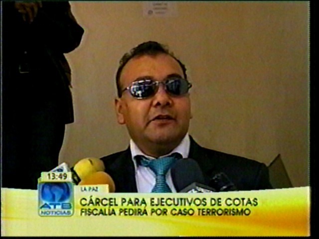Tv noticias. ‘Anteriormente se presentó imputación formal contra los ciudadanos Fernando Hebia, Ricardo Moreno, Juan Carlos Velarde y Hugo Paz. El Ministerio Público ha solicitado la aplicación de medidas cautelares contra estas personas y ha señalado para mañana’, así informó Marcelo Sosa, fiscal encargado de las investigaciones del caso terrorismo.