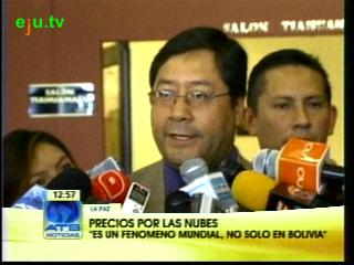 El Ministro de Economía, Luis Arce, asegura que no es preocupante el alza de precios de algunos productos de la canasta familiar, como algunos medios quieren hacer lo notar.