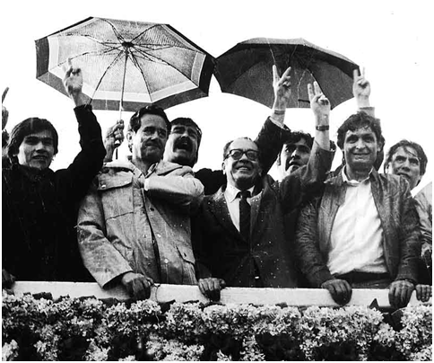 10 de octubre. Hernán Siles Zuazo (centro) el día del retorno a la democracia. A la derecha, Jaime Paz Zamora, su vicepresidente. | Fuente: Foto: Lucio Flores