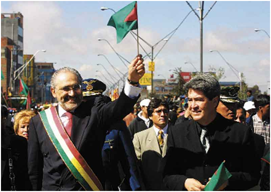 2004. -Carlos Mesa asume, pero una nueva presión hace que, Eduardo Rodríguez Veltzé tome el mandato el 18 de diciembre de 2005.