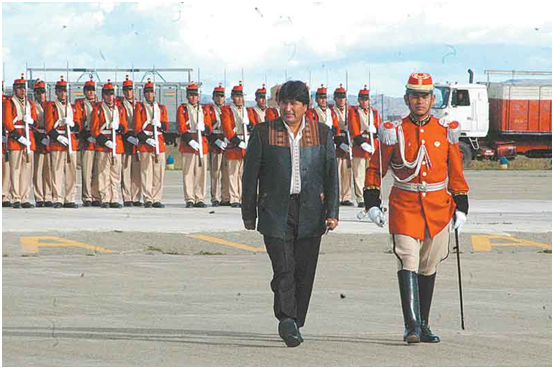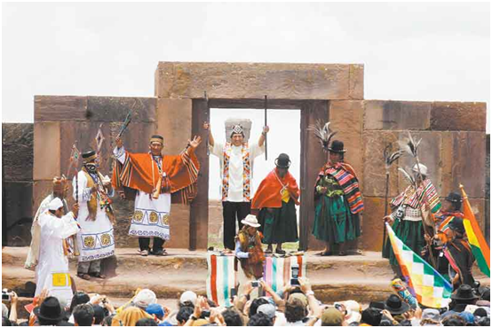 2006 En enero, Evo Morales asumió la presidencia con una votación mayor al 54%. Fue reelecto en diciembre del 2009. Segundo Mandato. El 24 de enero del 2010, en una ceremonia en Tiwanaku, Evo Morales fue reconocido como guía espiritual de Bolivia. Así inició su segundo gobierno.