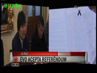 Para Morales, el referendo es lo máximo en democracia y si legalmente cabe la consulta para determinar sobre el tema, los resultados serán respetados, enfatizó. El presidente boliviano opinó que la libertad de expresión no puede utilizarse para promover manifestaciones racistas y discriminatorias y destacó que ahora lo que corresponde es reglamentar la ley.