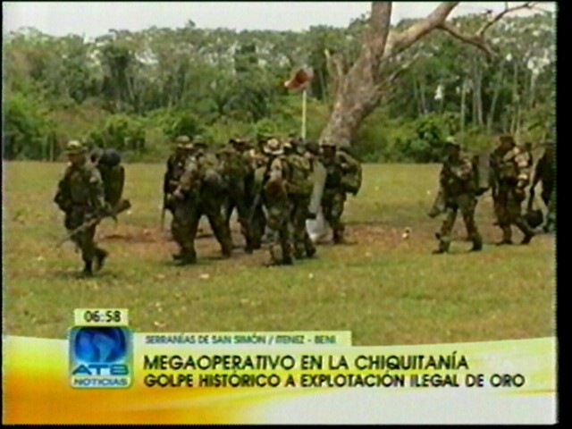 ‘Se ha iniciado el operativo más importante de control territorial de la Chiquitania, más de 2.000 hombres de la V y VIII División del Ejército y del Comando Conjunto del Plata están patrullando para evitar que sigan deforestando nuestros bosques, para impedir que exista tráfico de combustible, para impedir que se saque nuestro oro, para evitar que esta región continúe convertida en territorio de la ilegalidad. Son dos intervenciones militares en San Ramón para frenar la explotación de oro y en las serranías de San Simón, en el departamento del Beni, que son dos lugares donde hay ingentes recursos mineralógicos, fundamentalmente auríferas’, indicó. (Patria Nueva)