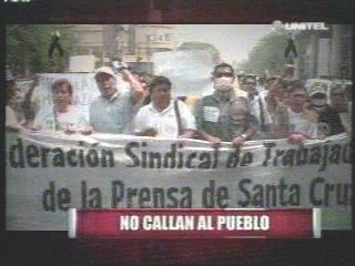 Tv y Radio meridiano. Periodistas anuncian marcha a La Paz, hoy se movilizaron en Cochabamba. Los gremialistas marchan y bloquean; los cocaleros mantienen bloqueo por cuarto día: Fejuve alteña mañana marcha contra embajadas de Perú y Estados Unidos.