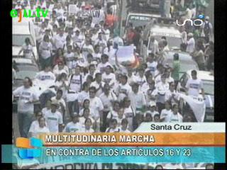 Miles de ciudadanos copan las calles de la capital cruceña en una multitudinaria marcha de protesta sin precedentes convocada por los trabajadores de la prensa. Los manifestantes que piden la libertad de expresión partieron desde la plazuela del Estudiante hasta la plaza 24 de Septiembre.