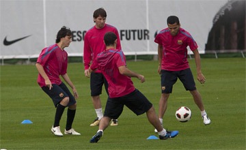 Este miércoles por la tarde el FC Barcelona realizó el tercer entrenamiento de la semana, con la novedad que supuso la vuelta de todos los internacionales. Argentinos y brasileños han trabajado con total normalidad mientras que Guardiola ha preparado una suave sesión de recuperación para los campeones del Mundo. Xavi, uno de los que no pudo ser llamado por Del Bosque por lesión, ha pisado césped por primera vez desde que inició su tratamiento de recuperación, antes del partido con el Mallorca (1-1).