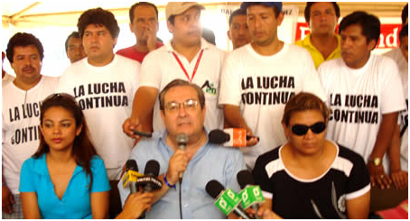 Aldo Peña, Guisela Santa Cruz y Elenir Echeverría visitaron hoy a los trabajadores de la prensa para confirmar su apoyo por su lucha en contra de los artículos 16 y 23 de la denominada ‘Ley Mordaza’, que en esta jornada se comenzó a reglamentar en la sede de Gobierno.