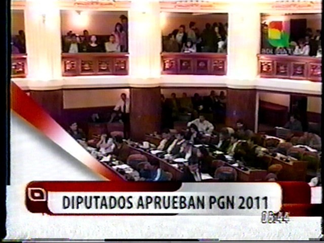 EL PLENO DE LA CÁMARA DE DIPUTADOS APROBÓ EN SU ESTACION EN GRANDE EL PRESUPUESTO GENERAL DEL ESTADO PARA LA GESTION 2011 Que prevé un crecimiento del 5.04% y establece un déficit fiscal del 4.3%. (Bolivia Tv)
