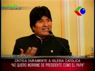 Evo aseguró frente a la posición de los representantes de la Iglesia que la democracia en Bolivia es transparente y no a puertas cerradas, en referencia a la manera que tiene la Iglesia Católica de escoger a su santidad el Papa. En esta elección sólo se conoce "si hay humo negro o blanco, para ver quién es el nuevo Papa", afirmó.