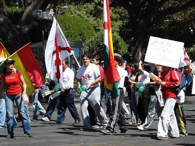 Mientras esto ocurría en la Plaza 25 de Mayo 17 personas se apostaron, entre administrativos y estudiantes universitarios, declarándose en huelga, pidiendo la libertad de Barrón y el esclarecimiento de los hechos del año 2008. (Erbol)