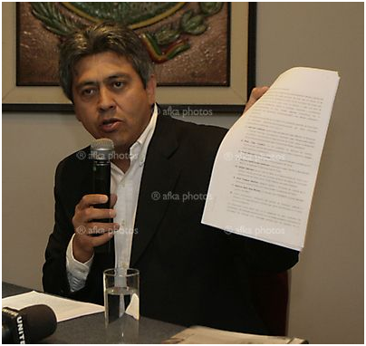 El gobernador de Tarija Mario Cossio, en conferencia de prensa hoy en La Paz, anuncia querella contra varias autoridades del Estado. Foto: AFKA.