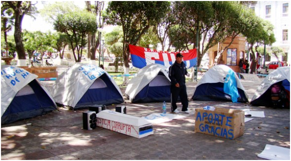 Piquetes de huelga instalados en la plaza central de Sucre. – Afka Periodista Invitado