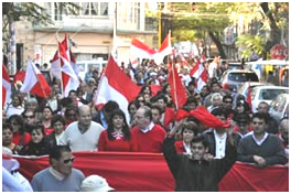 También ayer, los movilizados tendieron lienzos con leyendas exigiendo “Libertad, Democracia y Justicia” y recordando que La “Calancha no se olvida”, motivos por los cuales se realiza la medida de presión.