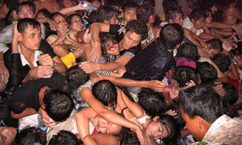 La mayoría de las víctimas —unas 240— eran mujeres jóvenes que quedaron atrapadas en un puente que une la pequeña Isla del Diamante con la ciudad, informaron fuentes de dos hospitales. La estampida se produjo cuando, a causa de la aglomeración, el intenso calor y la humedad, numerosas personas se desvanecieron y otras intentaron escapar del tumulto, explicaron testigos presenciales. Muchas de ellas, en su huida, se lanzaron al agua y murieron ahogadas. Más adelante, otra versión apuntaba que la estampida comenzó cuando varias personas resultaron electrocutadas, informa Reuters.