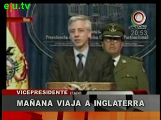 García Linera hablando de él mismo en tercera persona agregó: “el vicepresidente se va de viaje se va a Inglaterra a dar unas conferencias en Cambridge y Oxford, dos Universidades muy importantes de Inglaterra, tampoco estará”, puntualizó.