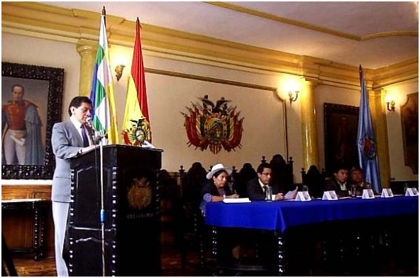 En su intervención, Cárdenas, resaltó el proceso de descolonización cultural que está siguiendo el gobierno del Movimiento Al Socialismo (MAS) con la aprobación de esta norma que, según Cárdenas, va a regular las relaciones sociales de los bolivianos