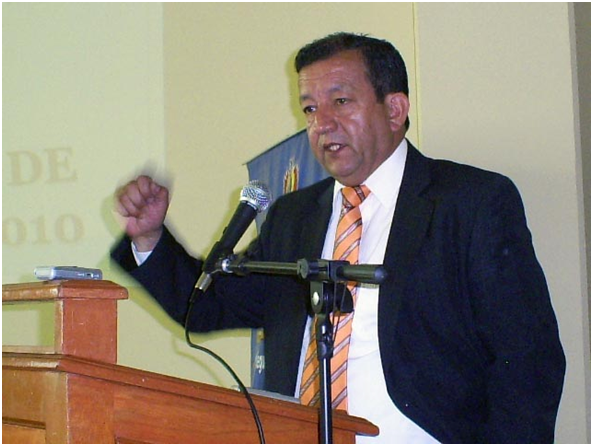 El viceministro de Seguridad Ciudadana, Gral. (r) Miguel Vásquez, en un seminario sobre delincuencia juvenil, ayer. (Foto ABI).