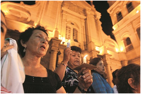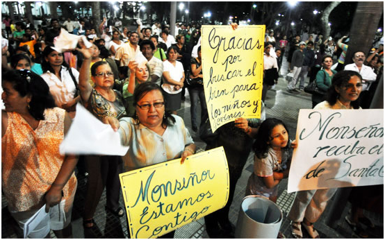 Tras varias semanas de acusaciones y críticas del Gobierno nacional a la Iglesia católica, anoche la población salió indignada a la plaza 24 de Septiembre y mantuvo una vigilia en el atrio de la Catedral. La Conferencia Episcopal pidió a las autoridades reaccionar con serenidad.