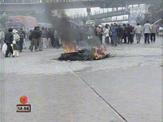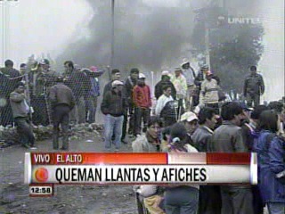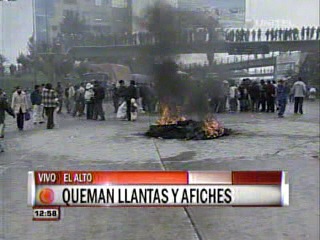 Tv noticias. Fejuve de El Alto bloquea la autopista, queman afiches del MAS.