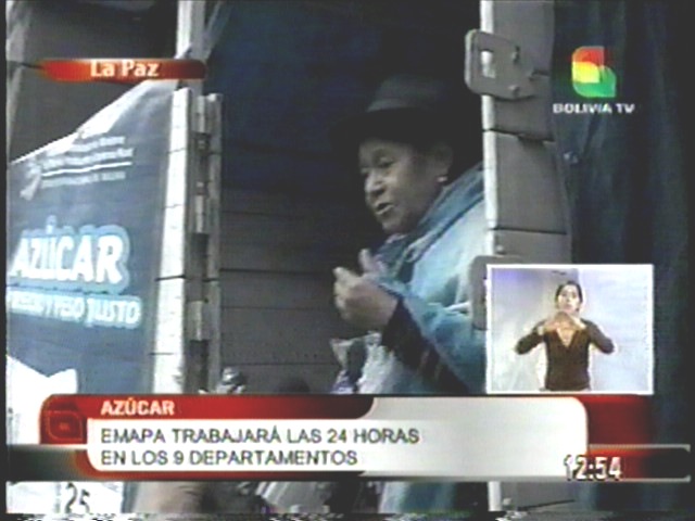 Mientras tanto un camión de Insumos Bolivia en la avenida mariscal Santa Cruz (en el centro paceño) procedió a vender 5 kilos de azúcar en Bs.25, generando una enorme fila.