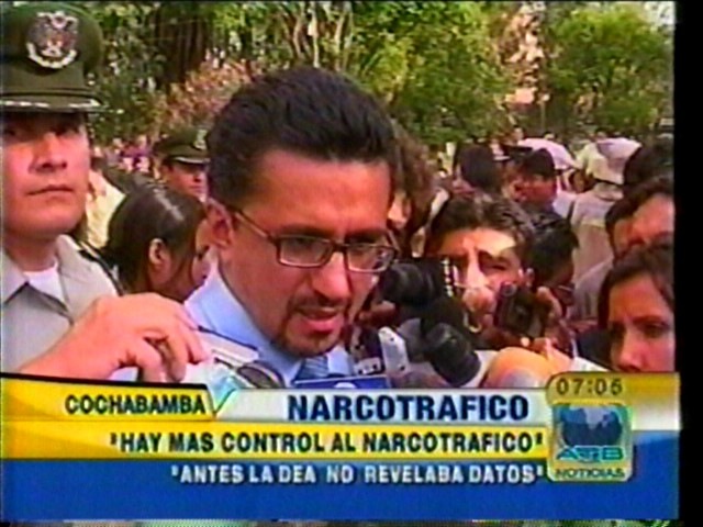 Cochabamba: El ministro de Gobierno, Sacha Llorenti, no quiso responder a las declaraciones del ex Ministro Almaraz, consultando sobre el fuerte incremento de narcotráfico en el Chapare. Respondió que ya emitió informes a la Asamblea Legislativa Plurinacional, al contrario, se limitó a elogiar la labor de la Fuerza de Tarea Conjunta sobre erradicación e interdicción para controlar el narcotráfico.
