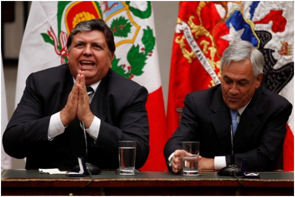 El presidente de Perú, Alan García en una conferencia de prensa tras reunión con su homólogo de Chile, Sebastián Piñera – Efe