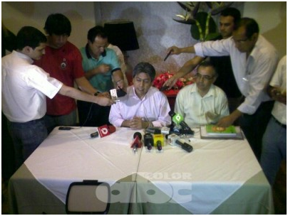 ABC.- El ex gobernador de Tarija, Mario Cossío, ofreció una conferencia de prensa expresando su cariño hacia el pueblo paraguayo por su solidaridad. El ex funcionario boliviano dijo que la seguridad de su familia ahora depende exclusivamente del gobierno de Morales. Ratificó ser un perseguido político.