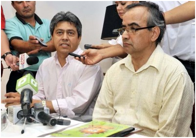 Mario Cossío durante la conferencia de prensa. A su lado un colaborador, Ruben Ardaya. Fuente: ABC Color – Claudio Genes