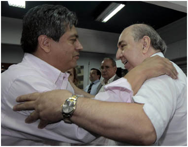 Saludo: Mario Cossío y Felipe Robertti, de la Conare, se abrazan, ayer en Asunción